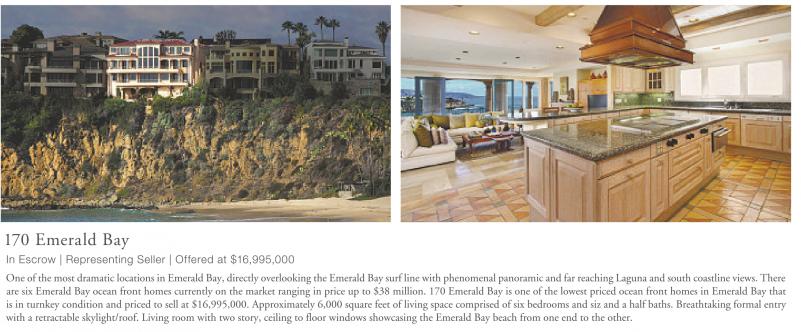 170 Emerald Bay In Escrow | Representing Seller | Offered at $16,995,000 One of the most dramatic locations in Emerald Bay, directly overlooking the Emerald Bay surf line with phenomenal panoramic and far reaching Laguna and south coastline views. There are six Emerald Bay ocean front homes currently on the market ranging in price up to $38 million. 170 Emerald Bay is one of the lowest priced ocean front homes in Emerald Bay that is in turnkey condition and priced to sell at $16,995,000. Approximately 6,000 square feet of living space comprised of six bedrooms and siz and a half baths. Breathtaking formal entry with a retractable skylight/roof. Living room with two story, ceiling to floor windows showcasing the Emerald Bay beach from one end to the other.