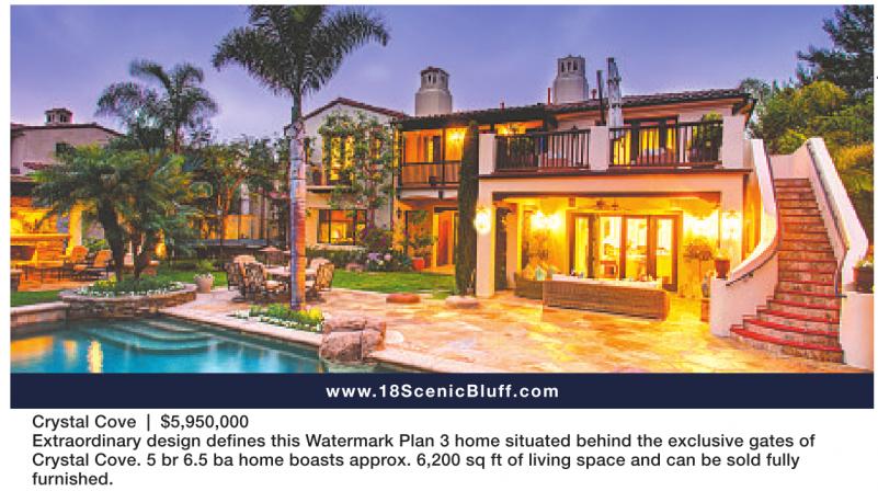 Crystal Cove | $5,950,000 Extraordinary design defines this Watermark Plan 3 home situated behind the exclusive gates of Crystal Cove. 5 br 6.5 ba home boasts approx. 6,200 sq ft of living space and can be sold fully furnished.