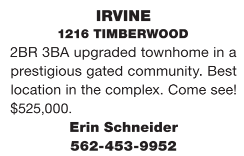 IRVINE 1216 TIMBERWOOD 2BR 3BA upgraded townhome in a prestigious gated community. Best location in the complex. Come see! $525,000.