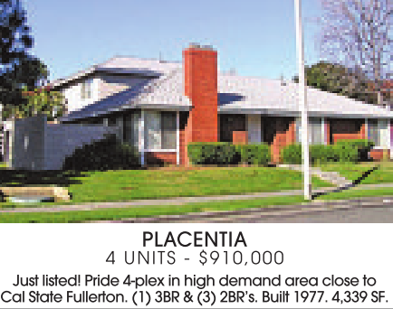 Just listed! Pride 4-plex in high demand area close to Cal State Fullerton. (1) 3BR &(3) 2BR’s. Built 1977. 4,339 SF.