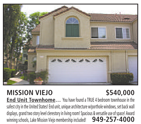 MISSION VIEJO $540,000 End Unit Townhome… You have found aTRUE 4bedroom townhouse in the