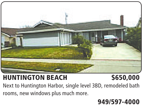HUNTINGTON BEACH $650,000 Next toHuntington Harbor, single level 3BD, remodeled bath rooms, new windowsplusmuchmore.