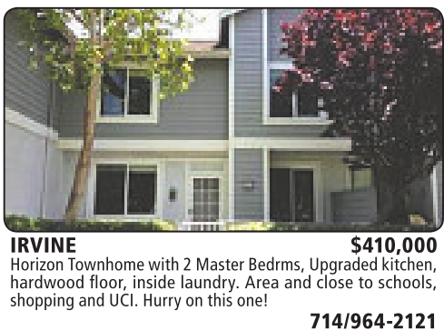IRVINE $410,000 HorizonTownhome with 2MasterBedrms, Upgraded kitchen,
