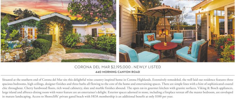 CORONA DEL MAR $2,195,000 : NEWLY LISTED 440 MORNING CANYON ROAD