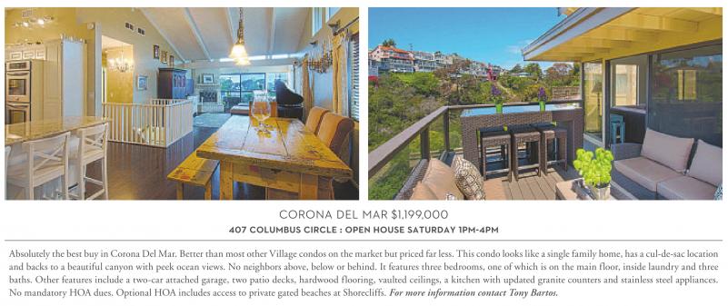 CORONA DEL MAR $1,199,000 407 COLUMBUS CIRCLE : OPEN HOUSE SATURDAY 1PM-4PM