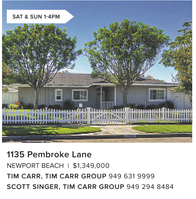 NEWPORT BEACH | $1,349,000 TIM CARR, TIM CARR GROUP 949 631 9999 SCOTT SINGER, TIM CARR GROUP 949 294 8484