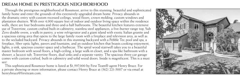 This sophisticated Rossmoor home is listed at $1,597,000 by First Team® agent Henry Bruce. For a private showing or more information, please contact Henry Bruce at (562) 221-5007 or via email at henrybruce@firstteam.com.