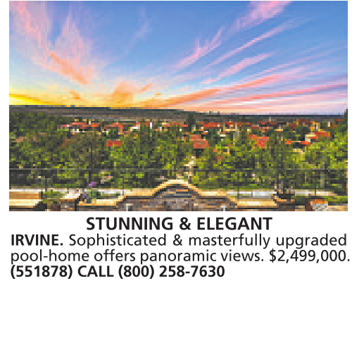 STUNNING & ELEGANT IRVINE. Sophisticated & masterfully upgraded pool-home offers panoramic views. $2,499,000. (551878) CALL (800) 258-7630