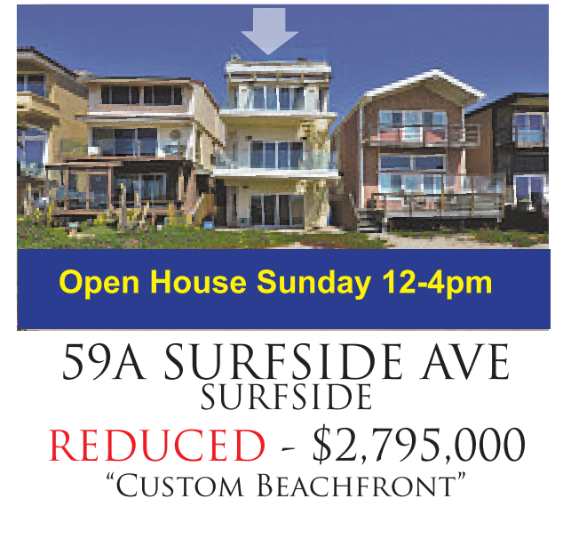 Open House Sunday 12-4pm 59A SURFSIDE AVE SURFSIDE REDUCED - $2,795,000 “Custom Beachfront” See also