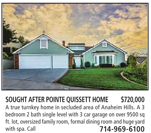 SOUGHT AFTERPOINTE QUISSETT HOME $720,000 Atrue turnkey home in secluded area of Anaheim Hills. A3
