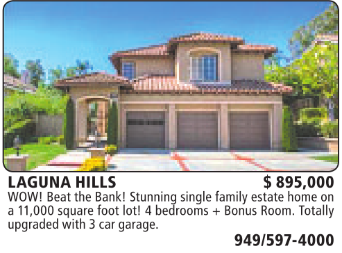 LAGUNA HILLS $ 895,000 WOW! Beat the Bank! Stunning single family estate home on a11,000 square foot lot! 4bedrooms +Bonus Room. Totally upgraded with 3car garage.