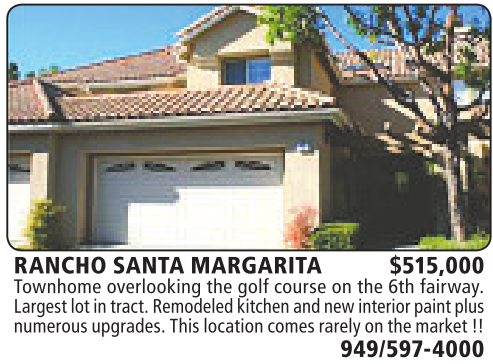 RANCHO SANTA MARGARITA $515,000 Townhome overlooking the golf course onthe 6th fairway. Largest lotintract.Remodeledkitchen andnew interior paint plus numerous upgrades. This location comesrarelyonthe market !!
