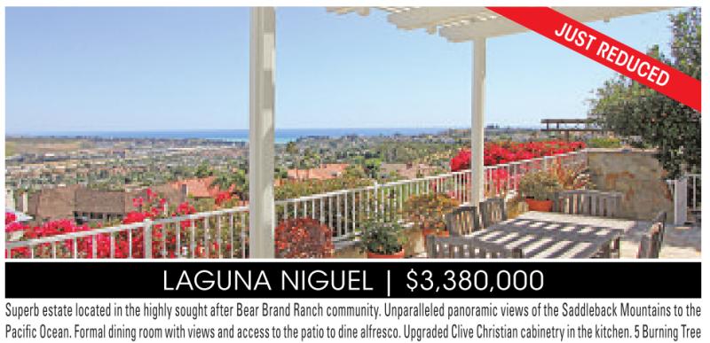 LAGUNA NIGUEL | $3,380,000 Superbestate locatedinthe highly soughtafter Bear BrandRanch community.Unparalleledpanoramic viewsofthe Saddleback Mountains to the Pacific Ocean. Formal diningroom with viewsand access to thepatio to dine alfresco.UpgradedClive Christiancabinetryinthe kitchen.5BurningTree