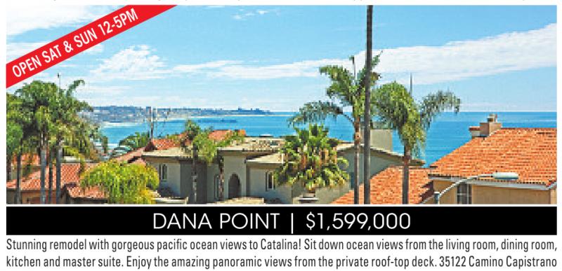 Stunningremodel with gorgeous pacific oceanviews to Catalina! Sitdownocean viewsfromthe living room,diningroom, kitchen andmastersuite.Enjoythe amazingpanoramic viewsfromthe private roof-top deck.35122 Camino Capistrano