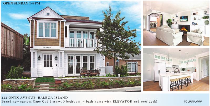 222 ONYX AVENUE, BALBOA ISLAND Brand new custom Cape Cod 3-story, 3 bedroom, 4 bath home with ELEVATOR and roof deck! $2,950,000