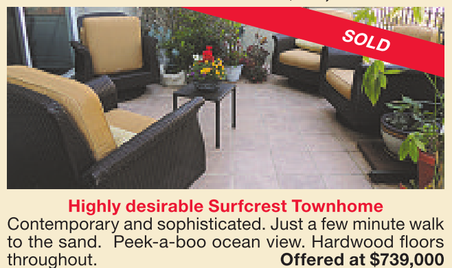 to the sand. Peek-a-boo ocean view. Hardwood floors throughout. Offered at $739,000