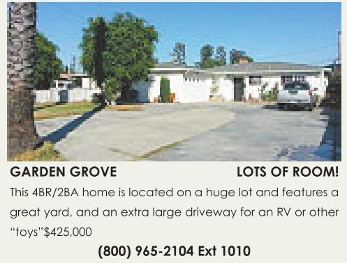 This 4BR/2BA home is located on ahuge lot and features a great yard, and an extra large driveway for an RV or other “toys”$425,000 (800) 965-2104 Ext 1010