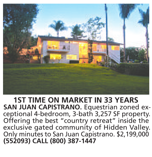 Only minutes to San Juan Capistrano. $2,199,000 (552093) CALL (800) 387-1447