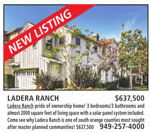 LADERA RANCH $637,500 Ladera Ranch pride ofownership home! 3bedrooms/3 bathrooms and almost 2000 square feet of living space with asolarpanel systemincluded. Come see whyLadera Ranchisone of south orangecountiesmost sought after master planned communities! $637,500 949-257-4000
