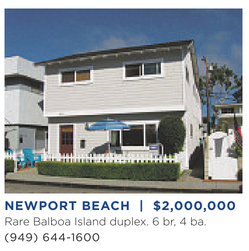 Rare Balboa Island duplex. 6 br, 4 ba. (949) 644-1600