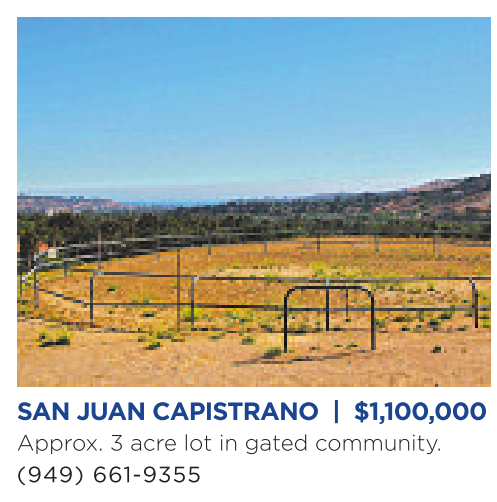 Approx. 3 acre lot in gated community. (949) 661-9355