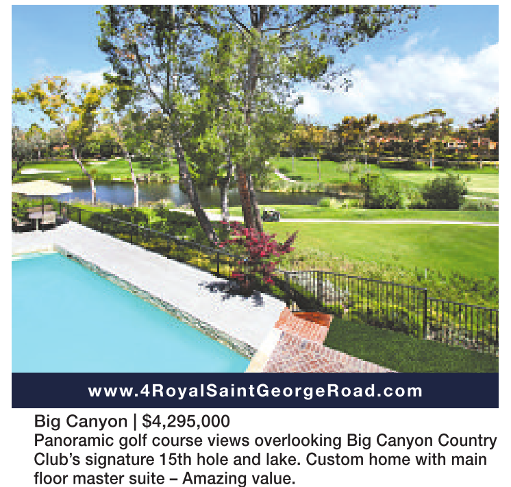 Big Canyon | $4,295,000 Panoramic golf course views overlooking Big Canyon Country Club’s signature 15th hole and lake. Custom home with main floor master suite – Amazing value.