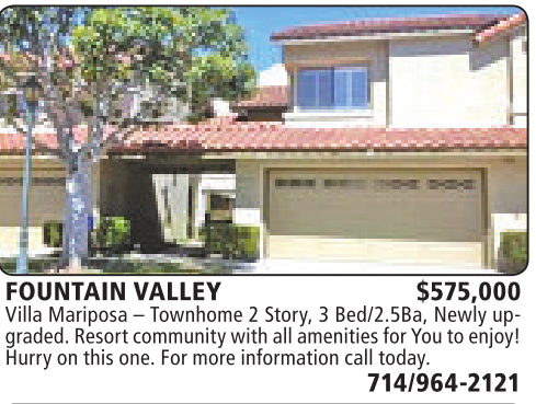 FOUNTAIN VALLEY $575,000 Villa Mariposa –Townhome 2Story, 3Bed/2.5Ba, Newly upgraded. Resortcommunity with allamenitiesfor Youtoenjoy!