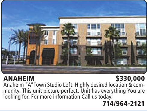 ANAHEIM $330,000 Anaheim“A”Town StudioLoft. Highlydesired location &community. This unit picture perfect. Unit has everything You are lookingfor.For more informationCallustoday.