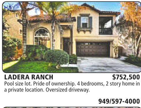 LADERA RANCH $752,500 Pool size lot. Prideofownership. 4bedrooms, 2story homein aprivatelocation. Oversizeddriveway.