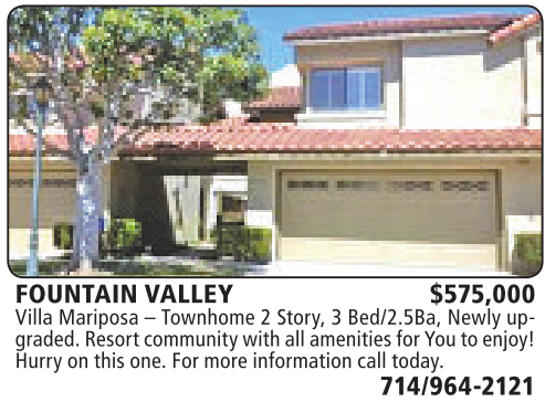FOUNTAIN VALLEY $575,000 Villa Mariposa –Townhome 2Story, 3Bed/2.5Ba, Newly upgraded. Resortcommunity with allamenitiesfor Youtoenjoy!