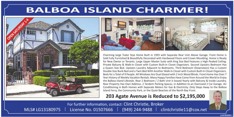 Charming large Tudor Stye Home Built in 1993 with Separate Rear Unit Above Garage. Front Home is Sold Fully Furnished & Beau fully Decorated with Hardwood Floors and Crown Moulding. Home is Ready for New Owner or Tenants. Large Upper Master Suite with King Size Bed Features a High Peaked Ceiling. Private Balcony & Walk-In Closet with Custom Built-In Closet Organizers. Second Upstairs Bedroom Has a Queen Size Bed. Upstairs Laundry Adjacent to Bedrooms. Third Bedroom (Downstairs) Has a Custom Double-SizeBunk Bedand aTwin Bed With Another Walk-In Closetwith CustomBuilt-In ClosetOrganizers. Beds foraTotal of 9People. All Windows AreDual Glazed with 2Inch Wood Blinds. FrontHome Has Over 7 Year History of Weekly Vaca on Rentals. ManyHappyFamilies Have Come from Around the World to Enjoy the Balboa Island Lifestyle. Rear 2 Bedroom / 2 Bath Unit is leased Yearly with Balcony & Inside Laundry. Rear Property Has Own Address. 2 Tandem Parking Spaces, in Addi on to an Oversized 2 Car Garage. Air Condi oning in Both Homes with Separate Meters for Gas & Electricity. Only Steps Away to the Balboa Island Ferry, the Community Park, or the Quiet Beaches of the North Bay Front.