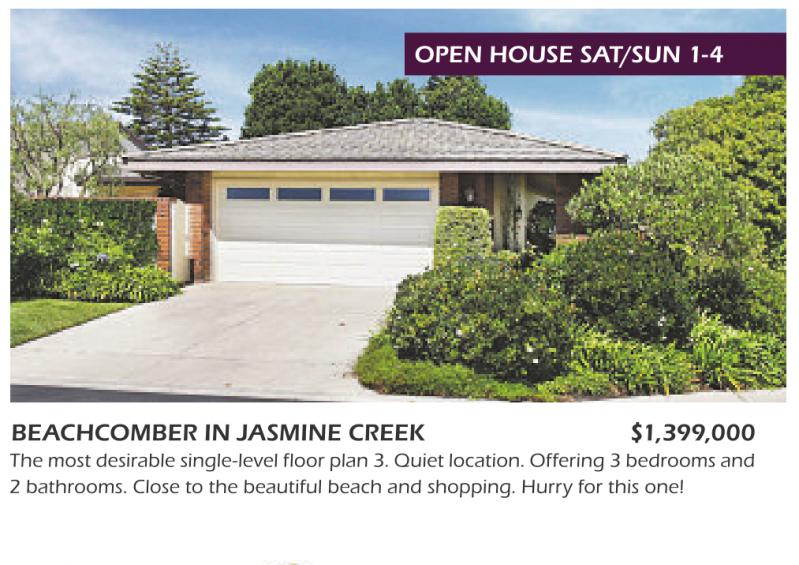 BEACHCOMBER IN JASMINE CREEK $1,399,000 The most desirable single-level floor plan 3. Quiet location. Offering 3 bedrooms and 2 bathrooms. Close to the beautiful beach and shopping. Hurry for this one!