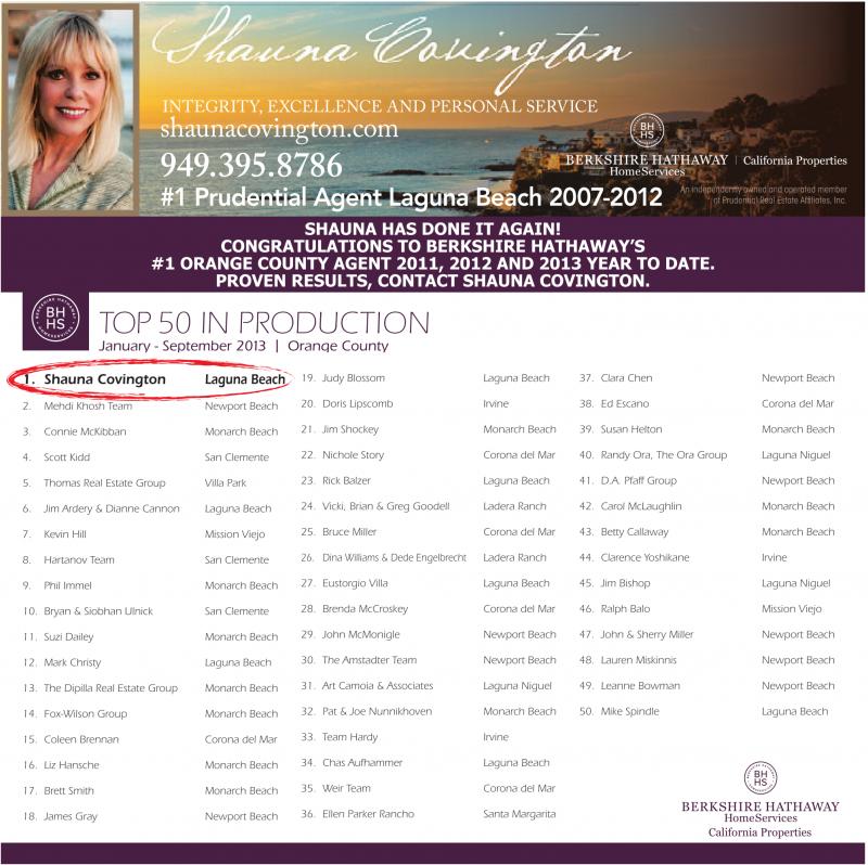 CONGRATULATIONS TO BERKSHIRE HATHAWAY’S #1 ORANGE COUNTY AGENT 2011, 2012 AND 2013 YEAR TO DATE.