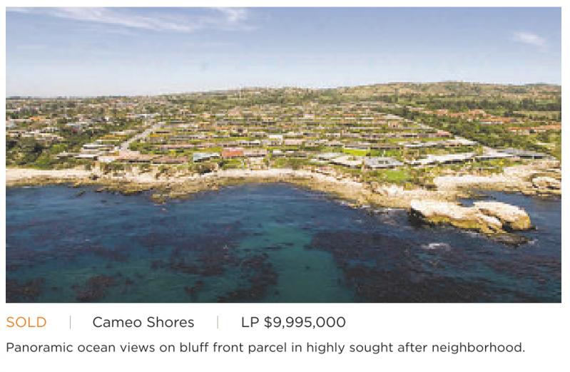 Panoramic ocean views on bluff front parcel in highly sought after neighborhood.