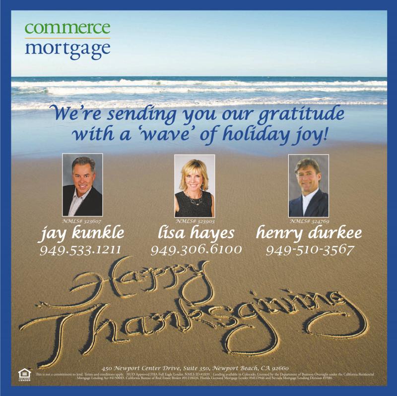 We’re sending you our gratitude with a ‘wave’ of holiday joy! NMLS# 323607 jay kunkle 949.533.1211 NMLS# 323903 lisa hayes 949.306.6100 NMLS# 324769 henry durkee 949-510-3567 450 Newport Center Drive, Suite 350, Newport Beach, CA 92660 This isnot acommitment to lend. Terms and conditions apply. HUD Approved FHA Full Eagle Lender.NMLS ID #1839. Lending available in Colorado, Licensed by the Department of Business Oversight under the California Residential Mortgage Lending Act #4150083, California Bureau of Real Estate Broker #01218426, Florida Licensed Mortgage Lender #MLD946 and Nevada Mortgage Lending Division #3580.
