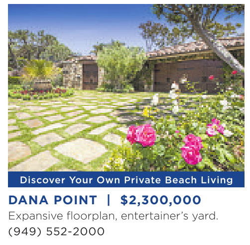 Discover Your Own Private Beach Living DANA POINT | $2,300,000 Expansive floorplan, entertainer’s yard. (949) 552-2000