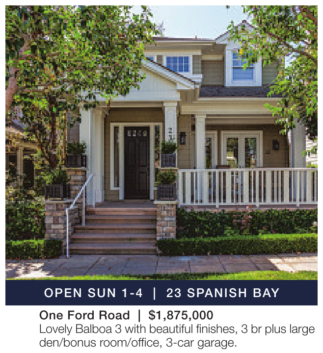 One Ford Road | $1,875,000 Lovely Balboa 3 with beautiful finishes, 3 br plus large den/bonus room/office, 3-car garage.