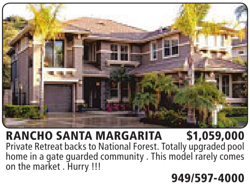 RANCHO SANTA MARGARITA $1,059,000 PrivateRetreat backstoNational Forest.Totally upgraded pool homeinagateguarded community.This modelrarelycomes on themarket.Hurry !!!