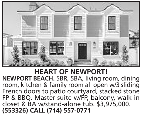 FP & BBQ. Master suite w/FP, balcony, walk-in closet & BA w/stand-alone tub. $3,975,000. (553326) CALL (714) 557-0771