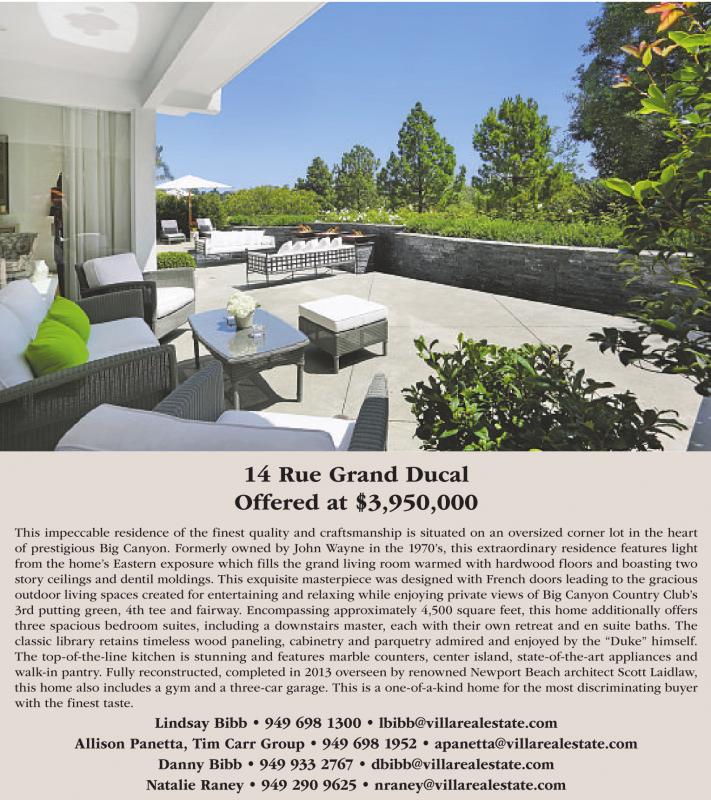 Lindsay Bibb • 949 698 1300 • lbibb@villarealestate.com Allison Panetta, Tim Carr Group • 949 698 1952 • apanetta@villarealestate.com Danny Bibb • 949 933 2767 • dbibb@villarealestate.com Natalie Raney • 949 290 9625 • nraney@villarealestate.com