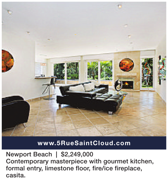 Newport Beach | $2,249,000 Contemporary masterpiece with gourmet kitchen, formal entry, limestone floor, fire/ice fireplace, casita.