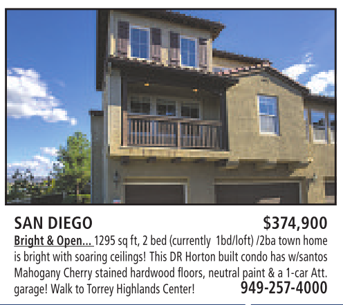 SAN DIEGO $374,900 Bright &Open... 1295 sq ft,2bed (currently 1bd/loft)/2batownhome
