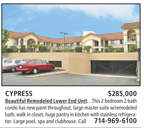 condohas new paint throughout,large mastersuitew/remodeled bath, walk in closet,hugepantryinkitchen with stainlessrefrigerator. Largepool, spaand clubhouse. Call 714-969-6100