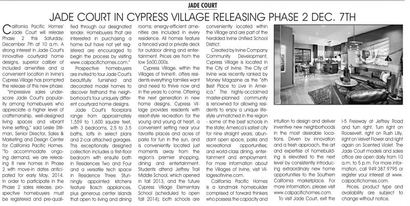 JADe CourT In CyPreSS VILLAge reLeASIng PHASe 2 DeC. 7TH