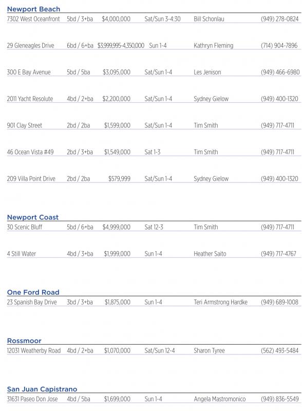 Newport Coast 30 Scenic Bluff 5bd /6+ba $4,999,000 Sat12-3 Tim Smith (949) 717-4711