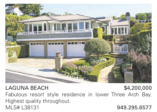 LAGUNA BEACH $4,200,000 Fabulous resort style residence in lower Three Arch Bay. Highest quality throughout. MLS# L38131 949.295.6577