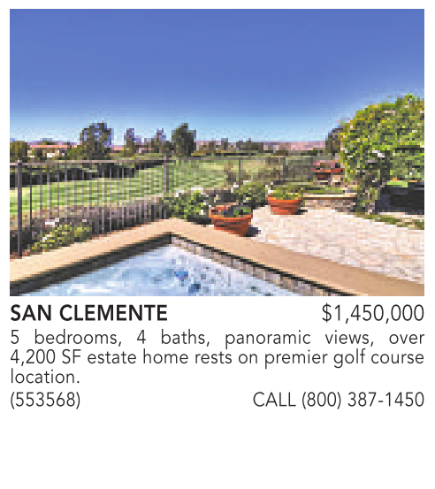 SAN CLEMENTE $1,450,000 5 bedrooms, 4 baths, panoramic views, over 4,200 SF estate home rests on premier golf course location. (553568) CALL (800) 387-1450