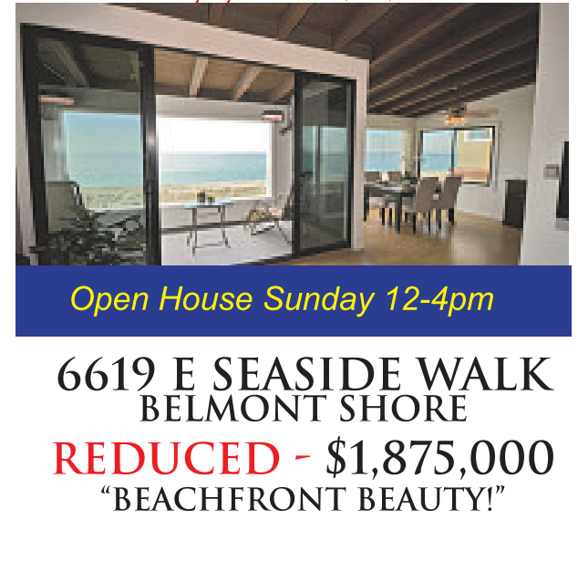 Open House Sunday 12-4pm 6619 E Seaside Walk Belmont Shore REDUCED - $1,875,000 “Beachfront beauty!” See also