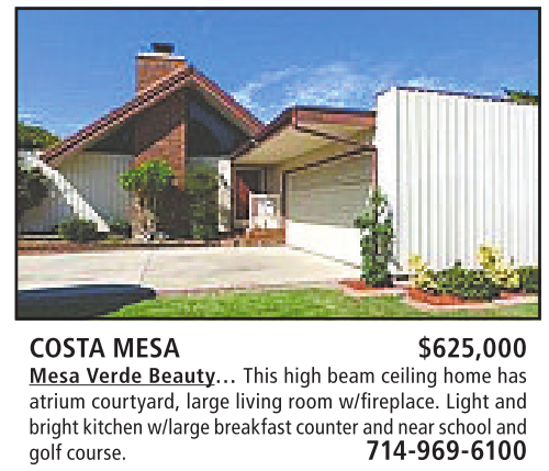 COSTA MESA $625,000 Mesa Verde Beauty… This high beam ceiling home has