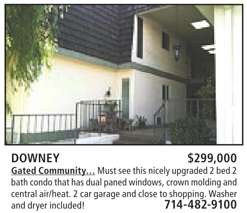 bath condothathas dual panedwindows,crown molding and central air/heat.2car garageand close to shopping. Washer anddryer included! 714-482-9100